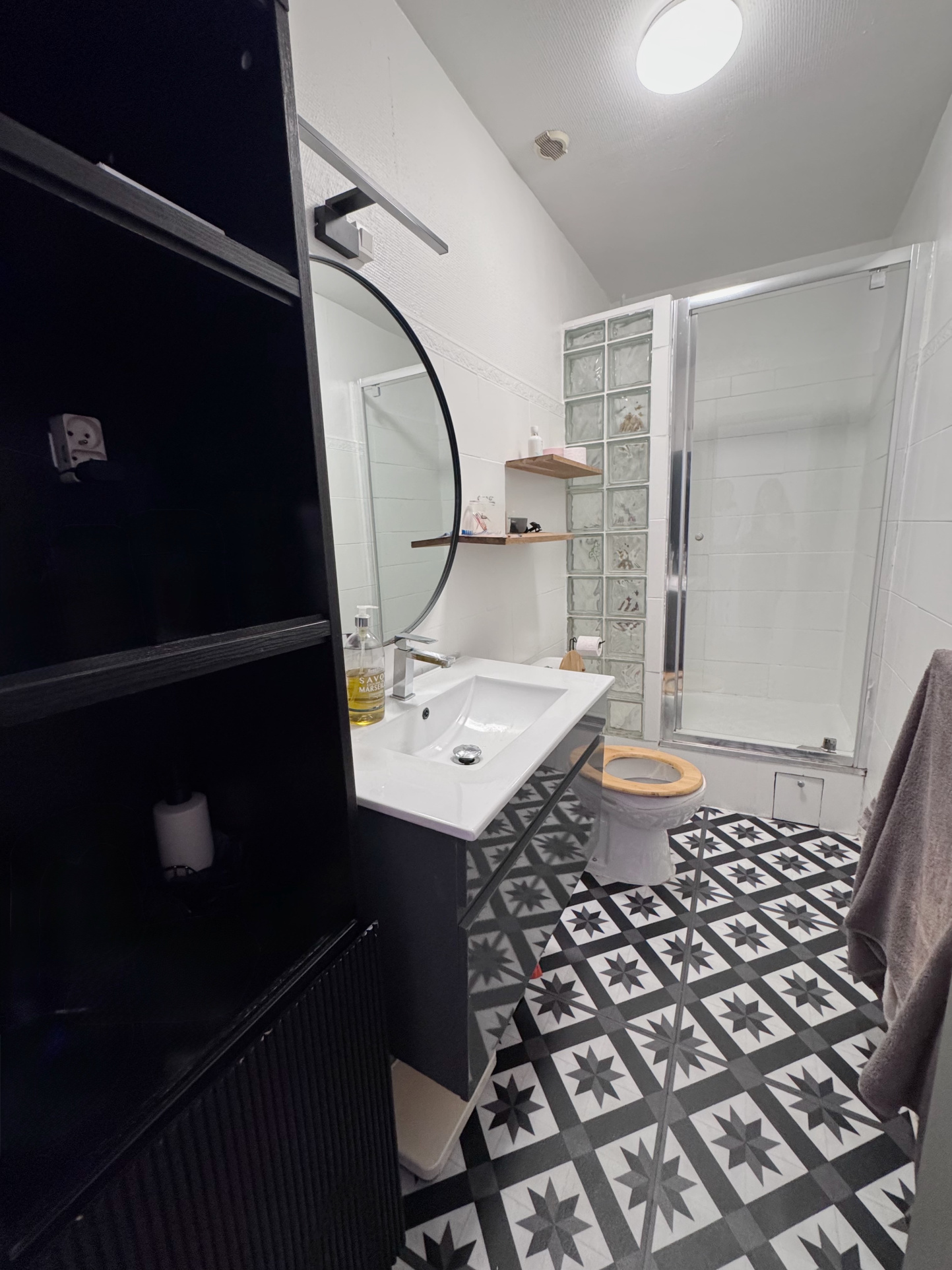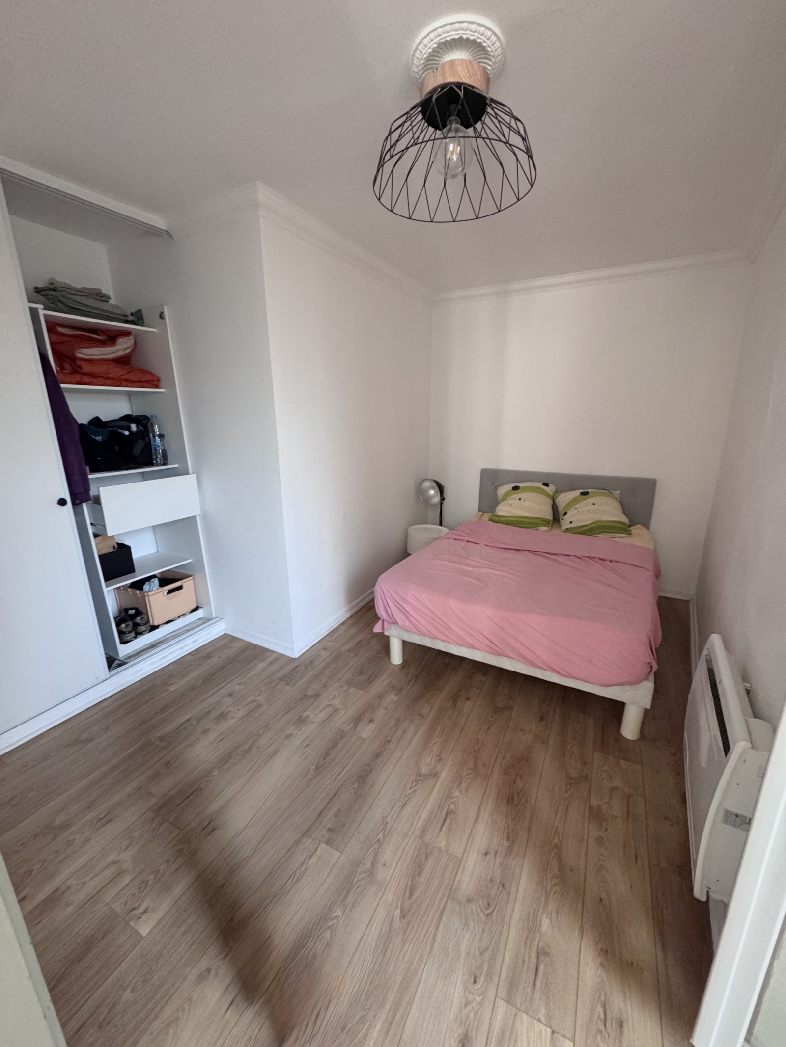 Il est composé d'un séjour, une cuisine équipée, un séjour, deux chambres et une salle de douche avec WC et un balcon. Belles prestations!