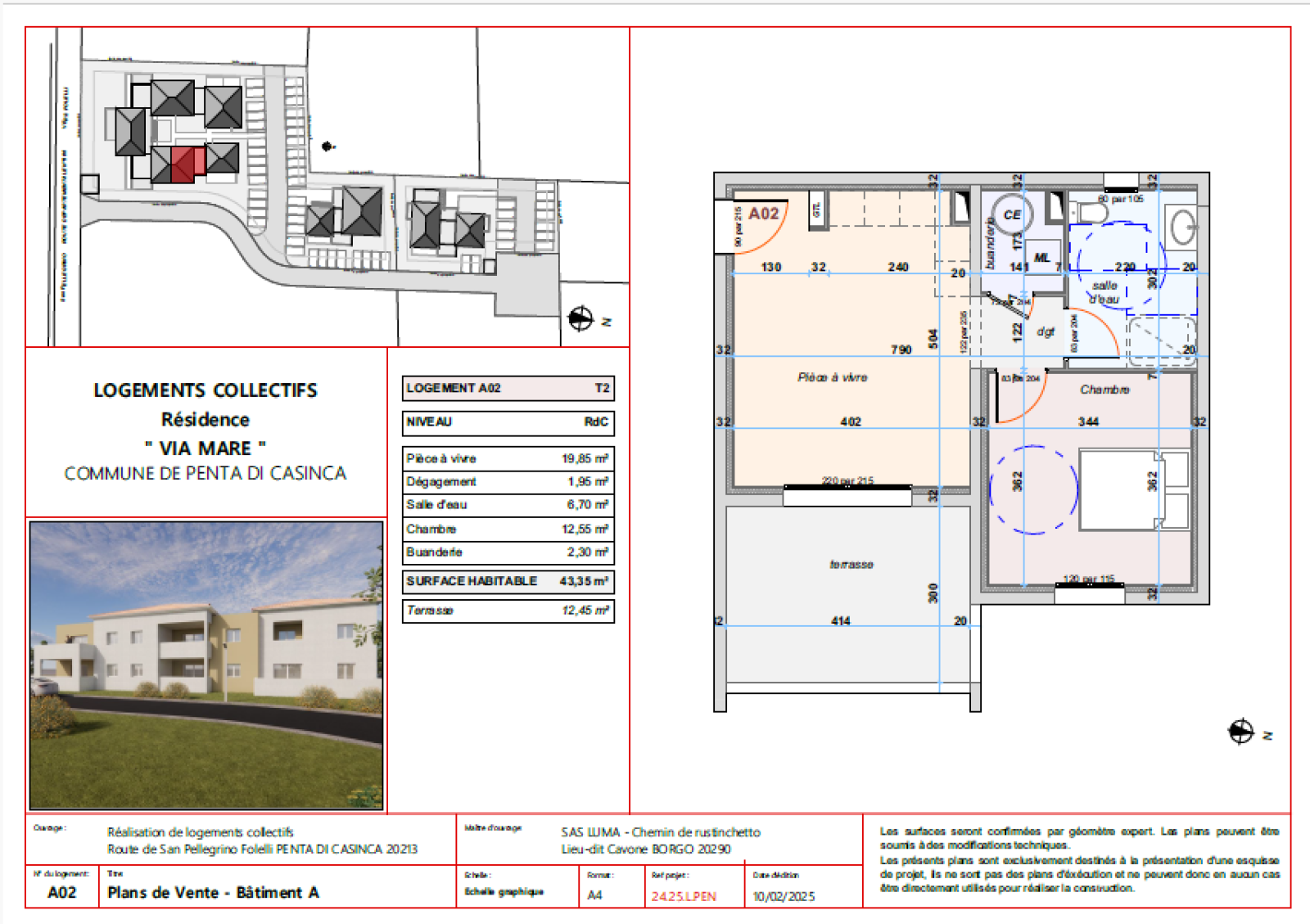 Penta-di-Casinca (20213)Nous vous proposons un T2 de 43.35 m² avec une terrasse de 12.45 m², un espace idéal pour profiter du soleil et de l'extérieur. En réservant votre appartement dès maintenant, vous aurez l’opportunité de choisir celui qui correspond parfaitement à vos besoins et de le personnaliser selon vos envies. Sélectionnez parmi une gamme de matériaux et de finitions de qualité : carrelage, salle de bain, faïence, et bien plus encore.