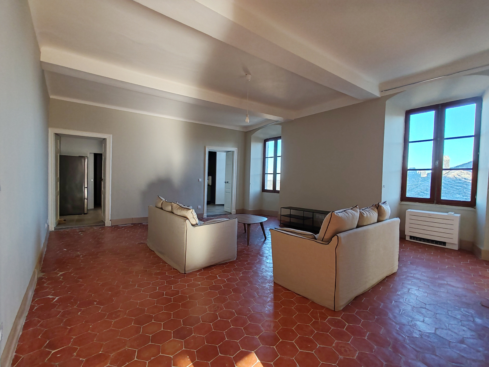 Cervione (20221)À vendre en Exclusivité dans votre Agence DESA IMMOBILIER, au coeur du village de Cervioni, un magnifique appartement T3 de 92 m². Ce bien, rénové dernièrement, aux volumes généreux, est composé d'une pièce de vie climatisée de 33 m², de 2 chambres de 17 m², d'une belle cuisine séparée avec cellier et d'une salle d'eau avec wc. Cet appartement lumineux et ensoleillé avec sa triple exposition vous offre une vue exceptionnelle sur la Cathédrale Ste ERASME, une vue mer et une vue sur les ruelles, une petite place et les montagnes coté OUEST. Idéal jeune couple, investissement locatif ou ... pour les Bastiais qui n'ont pas de village !!...