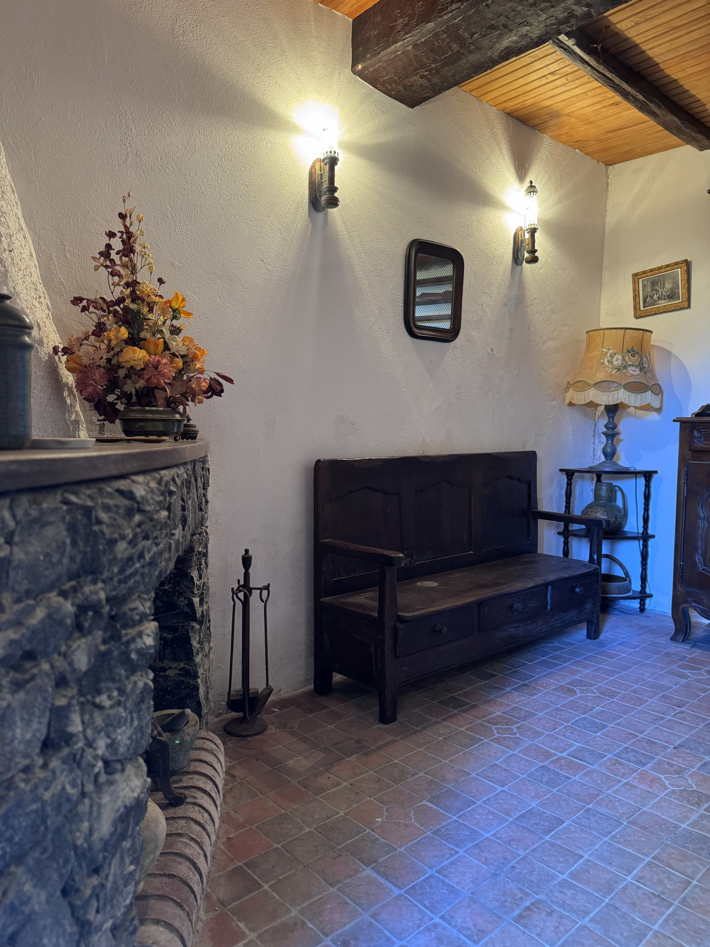 La salle d’eau, située à l’extérieur, conserve tout le charme typique des maisons de caractère du village.