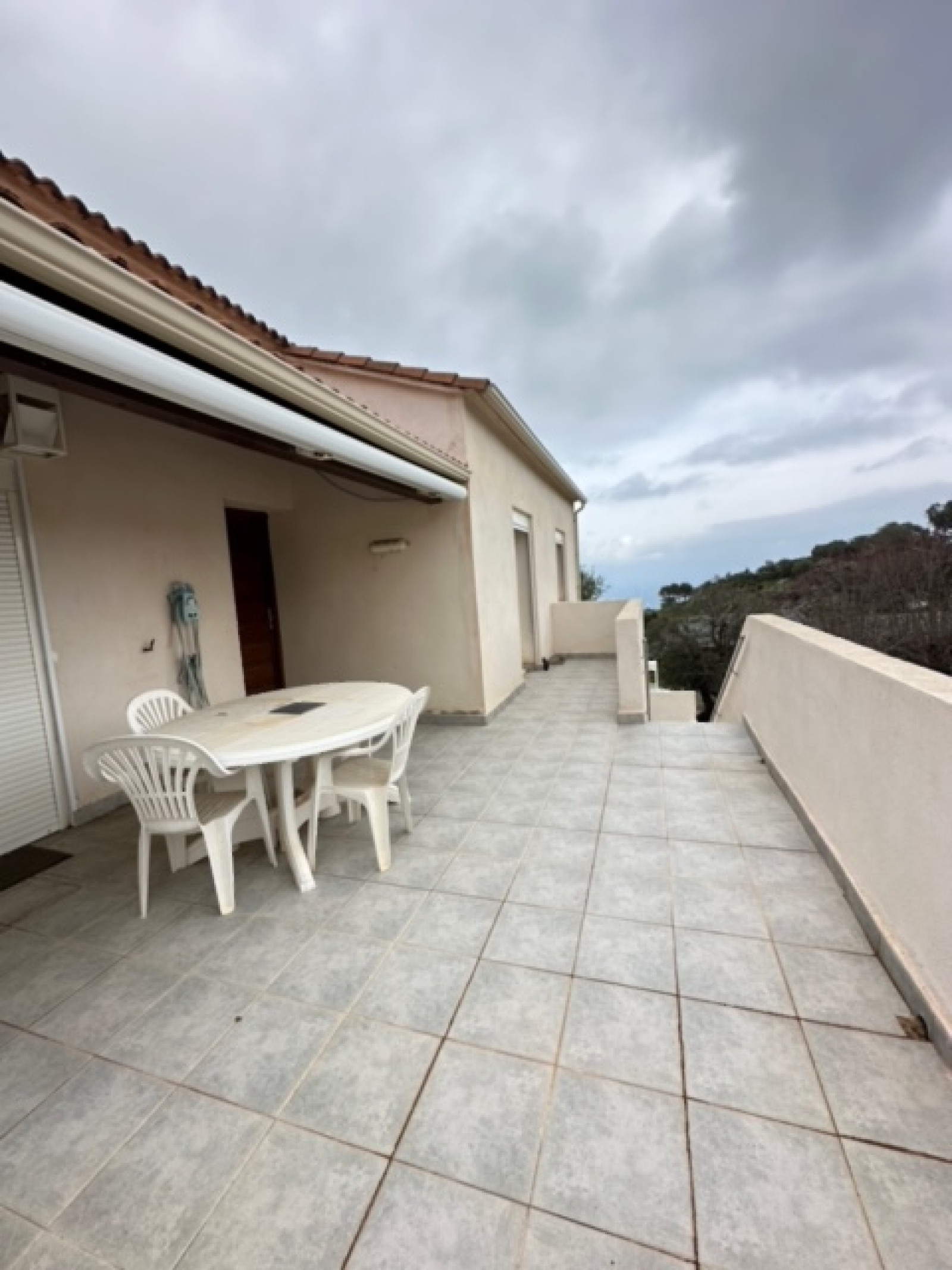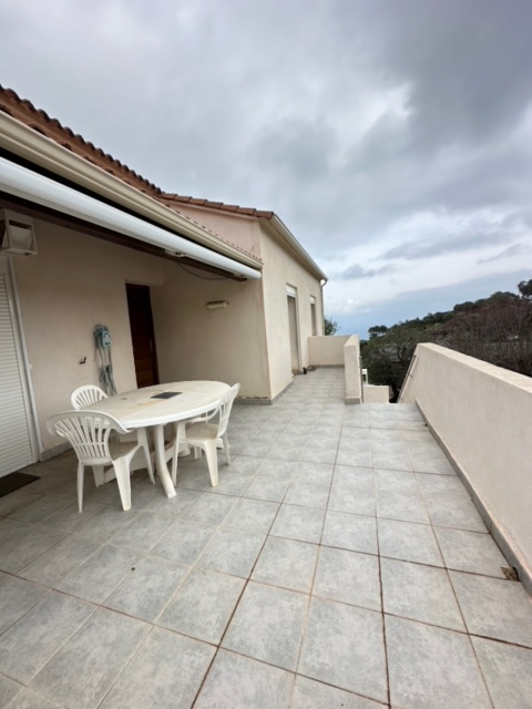 À l’étage, un appartement T4 lumineux comprenant une entrée, une cuisine séparée, un séjour, deux chambres, une salle de bain et un WC indépendant. Le séjour et la cuisine ouvrent tous deux sur une agréable terrasse avec vue mer, idéale pour les repas en extérieur. L’ensemble bénéficie de double vitrage.